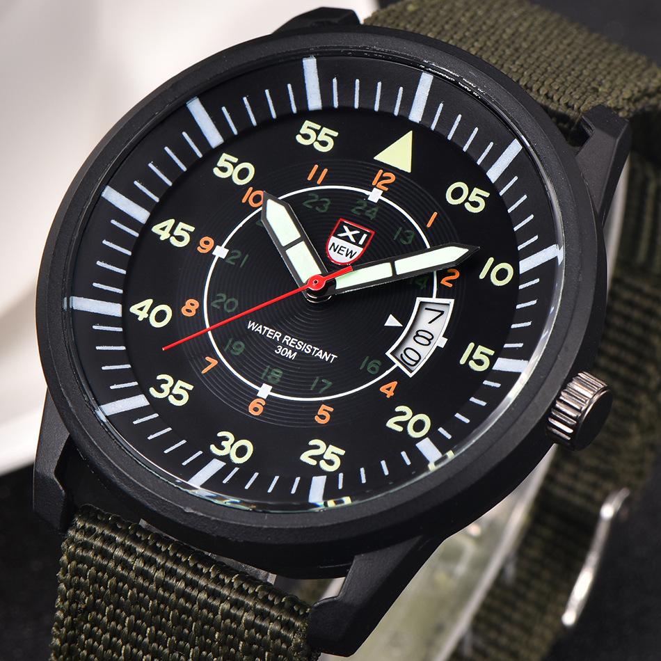 Męski Modny Zegarek Wojskowy z Nylonowym Paskiem, Kwarcowy, z Kalendarzem, Luminous