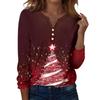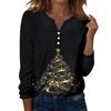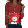 Damska koszulka z nadrukiem świątecznym, guzikami, długim rękawem, codzienna, weekendowa, modna, podstawowa, dekolt w serek, regularna góra