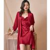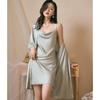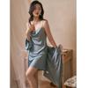Lodowy Jedwab Szlafrok z Długim Rękawem i Zestaw Kamizolki z Głębokim Dekoltem - Wiosna/Lato Damska Piżama Wysokiej Klasy