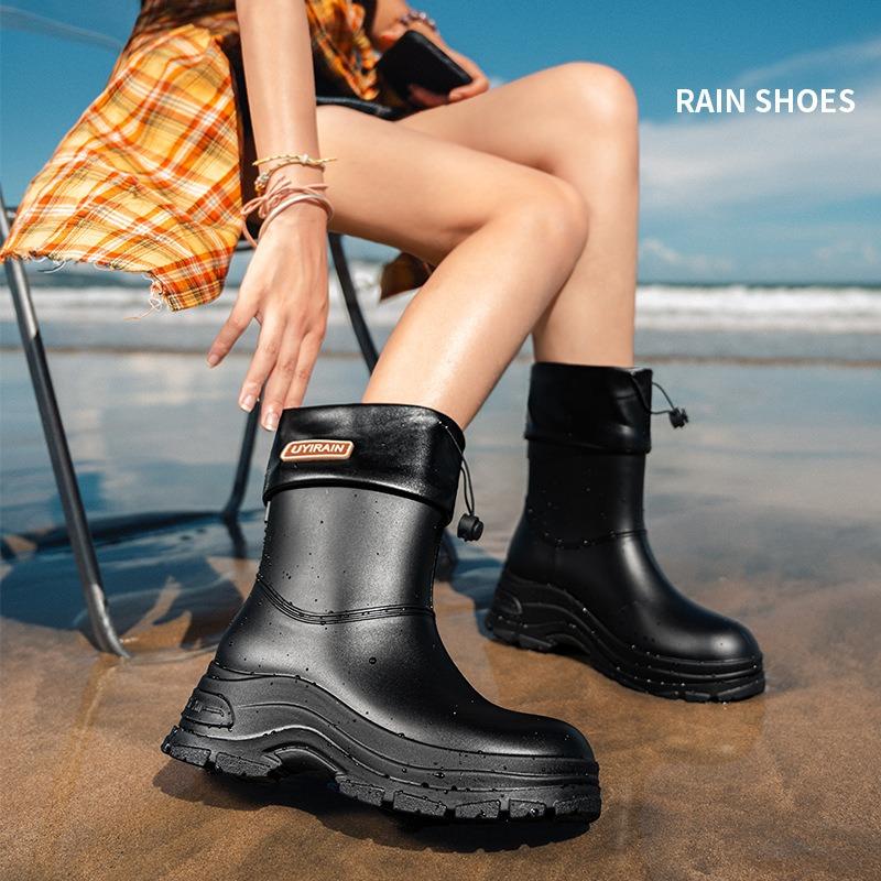 High-end women's rain boots medium and short tube outer wear versatile comfortable waterproof shoes thick sole heightening water shoes adult