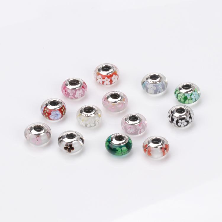 Koraliki ze srebra próby S925 i szkła Murano w kształcie kwiatów na bransoletkę Pandora - Kolekcja Wiosenna, DIY Dodatek do Biżuterii, Prezent