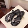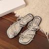 Letnia odzież 2025 nowe małe wysokie sandały rzymskie francuskie klapki na grubym obcasie damskie wszechstronne dżetowe zimne kapcie