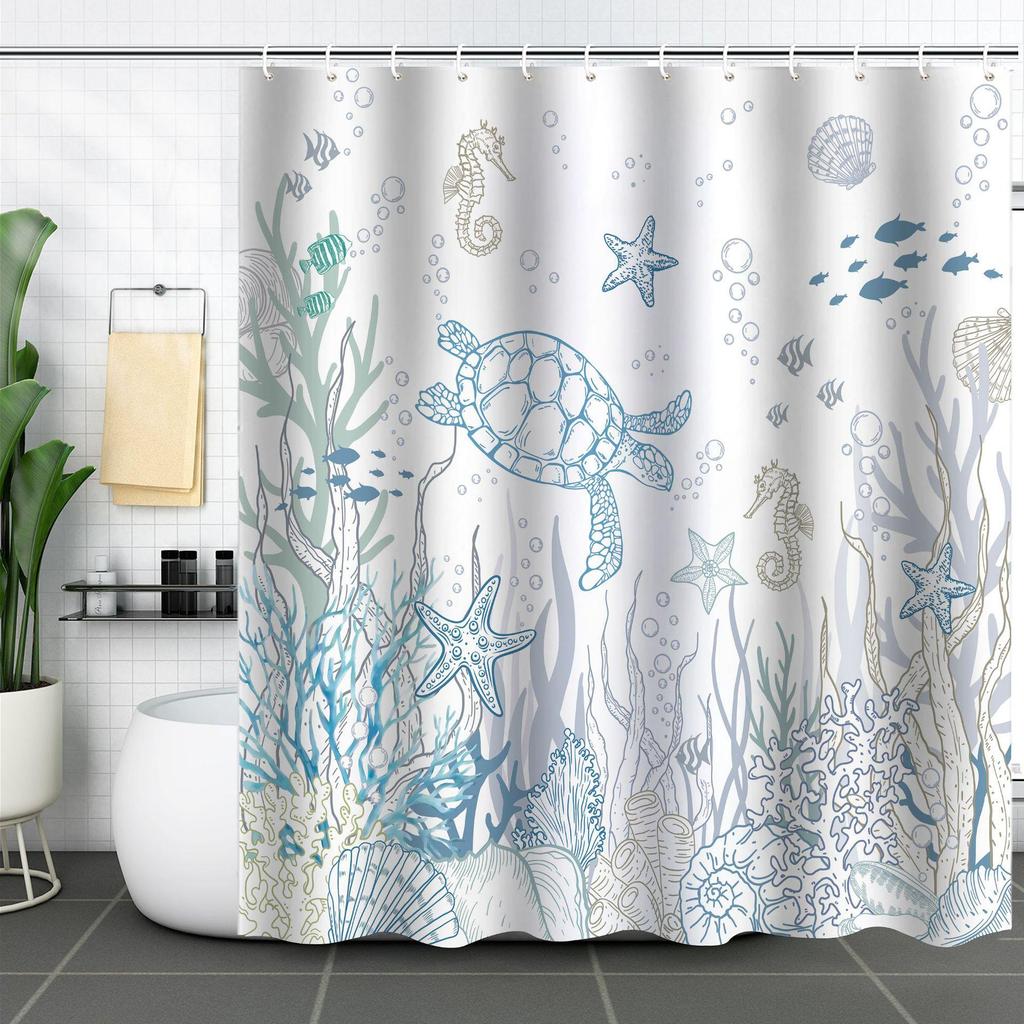 Wodoodporna zasłona prysznicowa 3D z motywem żółwia morskiego i rozgwiazdy, odporna na pleśń