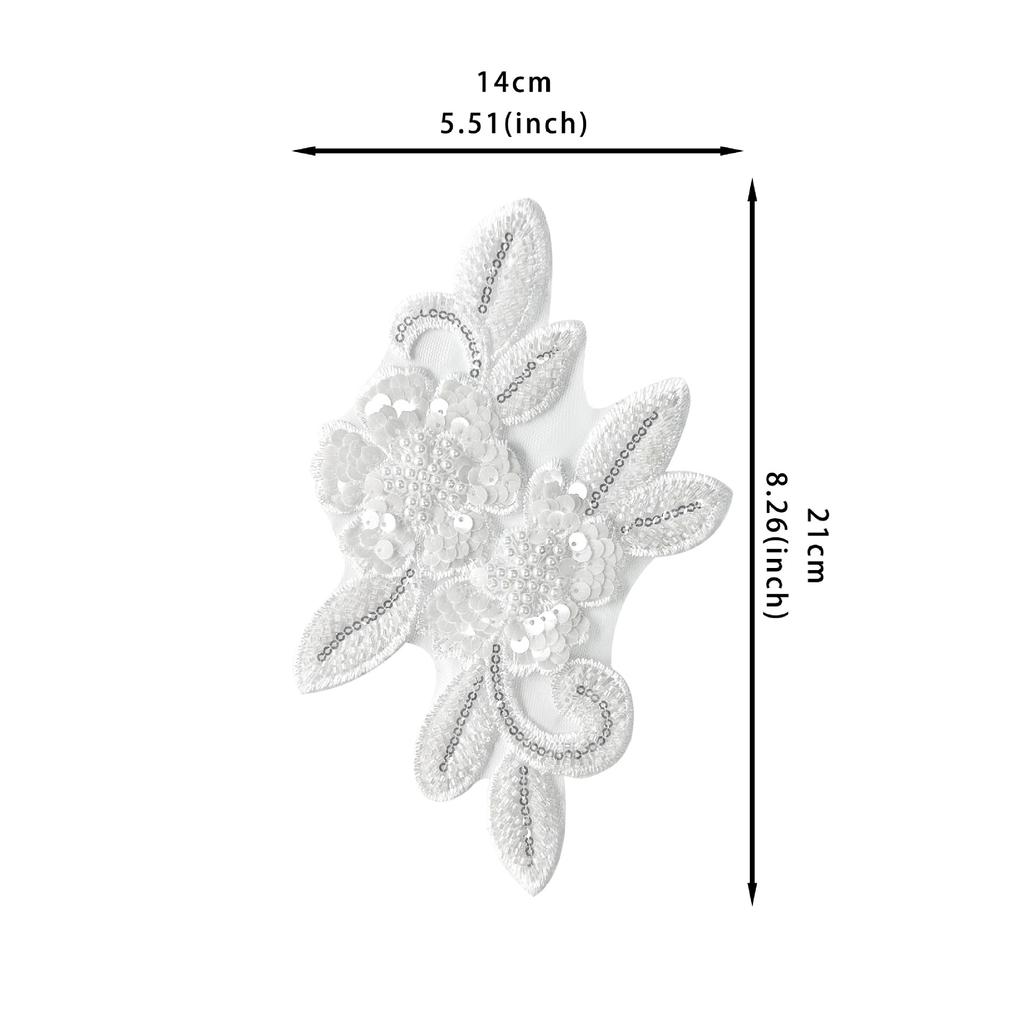 White Handmade Beaded Sequins Three-Dimensional Flower Applique Clothing Dress Wedding Decoration Cloth Sticker Accessories