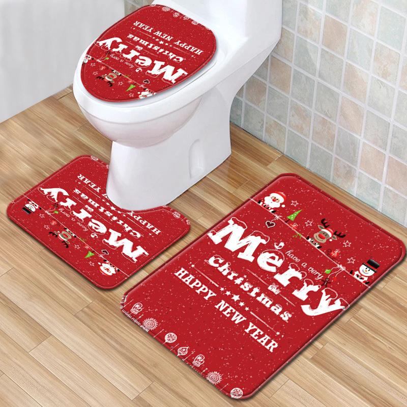 Christmas Toilet Three-Piece Floor Mat Bathroom Three-Piece Carpet Doormat