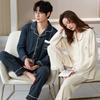 Zestaw piżam dla par: Damska i Męska Bawełniana Odzież Domowa z Długim Rękawem z Klapami Zapinanymi na Guziki