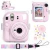 Nowy Model Etui do Instax Mini 12, Pełna Ochrona, Odporne na Zarysowania, Przenośne, z Paskiem na Ramię, Skóra PU (Różowy)