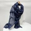 Spring And Summer Navy Blue Flower Printed Cotton Linen Scarf Thin Breathable Fashion Scarves