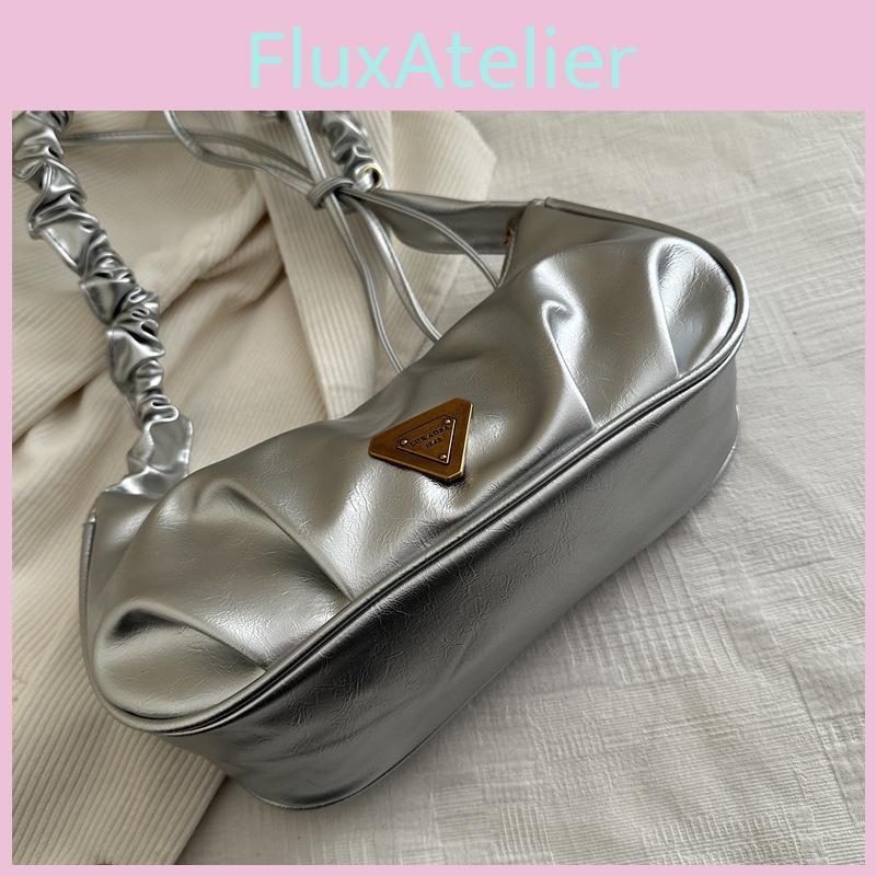 Trendy Pu Pleated Bow Cloud Bag Shoulder Bag With Zip Closure For Use Casual