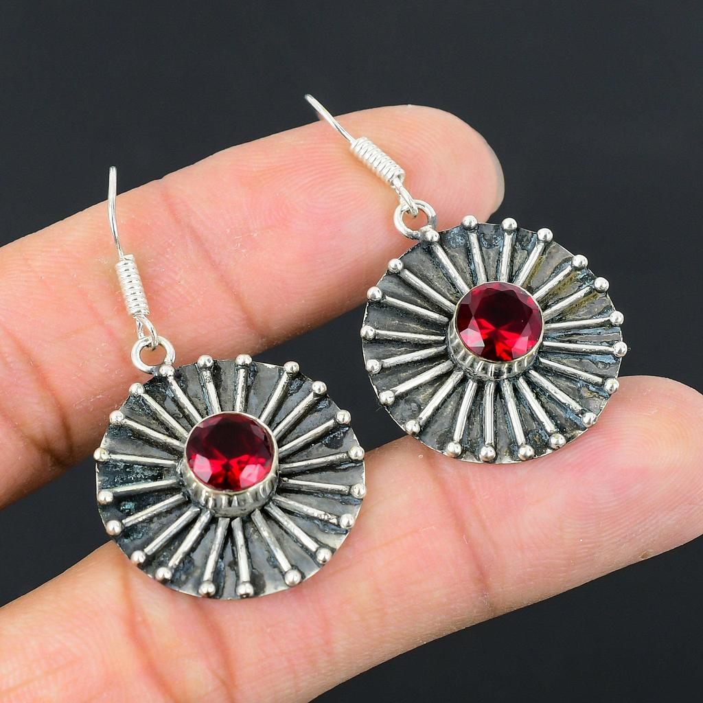 Natural Mozambique Garnet Gemstone Drop/Dangle Red Earrings 925 Sterling Silver