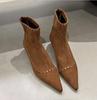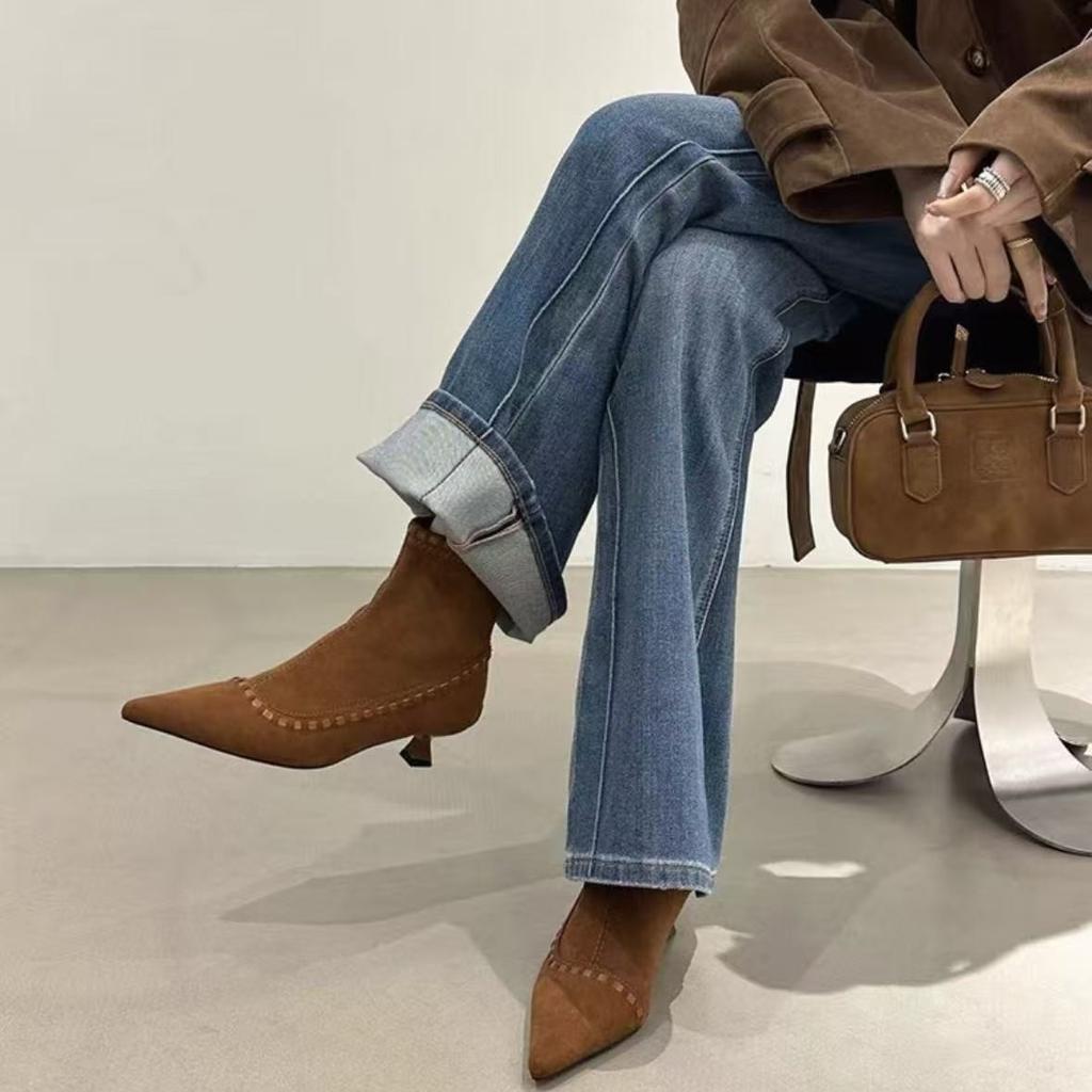 Jesień 2025 nowe popularne botki na cienkim obcasie ze szpicem, damskie modne botki w stylu francuskim, temperamentne, wszechstronne, retro, z kwadratowym noskiem