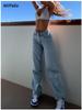 Dżinsy damskie z wysokim stanem, podarte, dopasowane