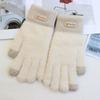 Hairy gloves female winter cute color matching plush knitted wool five fingers plush thickened cycling warm