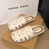 French bag head half slippers women's summer wear 2025 new with skirt flat-bottomed silver single shoes one foot cool slippers