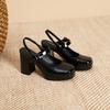 3359-21 Fairy wind square head patent leather thick heel Mary Jane single shoes new word with shallow mouth high heels women's shoes