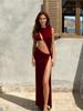 Seksowna długa sukienka bez rękawów z wycięciami, rozcięciem na udzie i zestawem topu bikini typu halter. Letni strój na imprezę, wakacje na plaży. K282