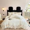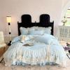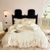 4 szt. Pościel ślubna w stylu koreańskim z koronkowymi kwiatami, haftowana, księżniczka, poszwa na kołdrę, prześcieradło/prześcieradło z gumką/falbana, poszewki na poduszki