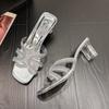 Moda 2025 Lato Odkryte Palce Damskie Kapcie Kwadratowy Nosek Wysokie Obcasy Cyrkonie Nowoczesne Sandały Duży Rozmiar Sukienka Impreza Modne Kapcie