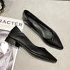 Miękkie skórzane buty robocze dla kobiet, czarne, nie męczące przy długotrwałym staniu w pracy, narzędziowe czubate na grubym obcasie buty pojedyncze dla kobiet, vers