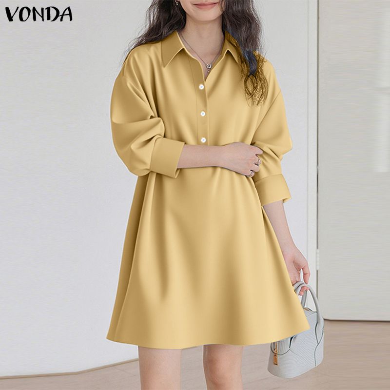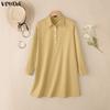 VONDA Damska Sukienka Mini z Klapami, Długim Rękawem, Zapinana na Guziki, Casualowa Tunika