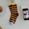Trendy Autumn and Winter Rolled-up Double-screw Striped Mid-calf Socks for Women, Double-layer Loose, Non-tight-fitting, School-style Pile Socks