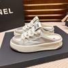 2025 half slippers women's outer wear 2025 summer new round head lace-up casual white shoes comfortable versatile board shoes