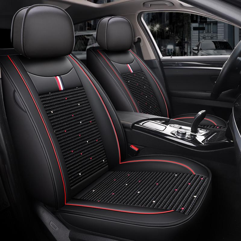 5-Seater High-Quality Full-Coverage Leather & Ice Silk Car Seat Covers - Universal Fit, Breathable, Anti-Slip, Easy to Install