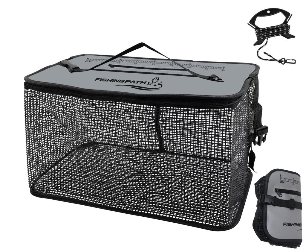 FISHING PATH Folding Floating Fishing Net, 60cm, with Bucket and 5m Rope, Multifunctional for Rock Fishing, Breakwater Fishing, Fishing Tackle,