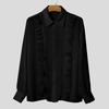 INCERUN Męskie koszule oversize z klapami, z długim rękawem, marszczone, prześwitujące, transparentne, na imprezę, do klubu, luźne