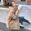 Zimowa Luźna Kurtka z Kapturem i Wypełnieniem Damska Duża Kieszeń Modna Średniej Długości Kurtka z Wypełnieniem Kurtka z Wypełnieniem Trend