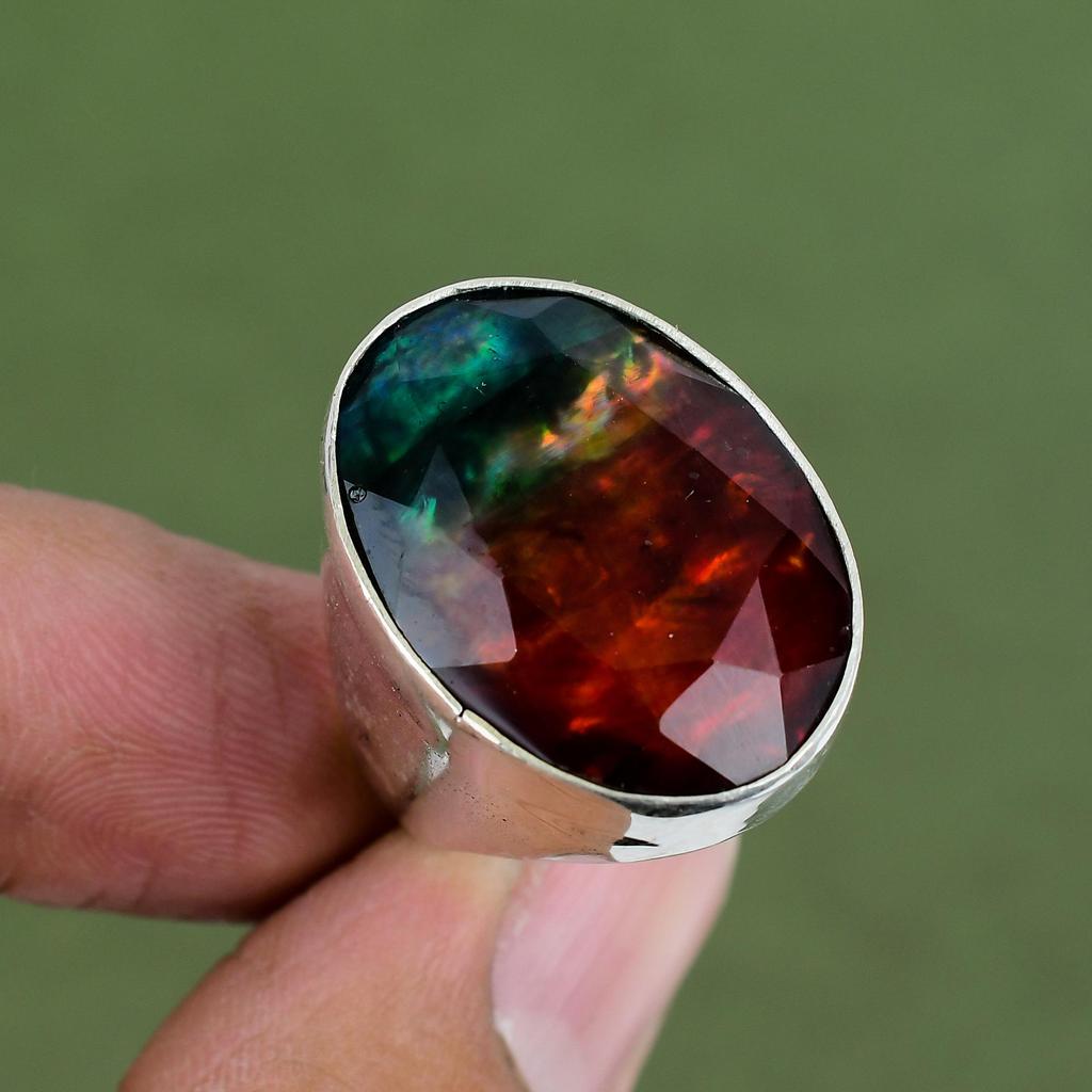 Faceted Ammolite Ring 925 Sterling Silver Ring Handmade Decent Ring Gemstone Jewelry Brand New Rings Engagement Gifts Available In Ring Size