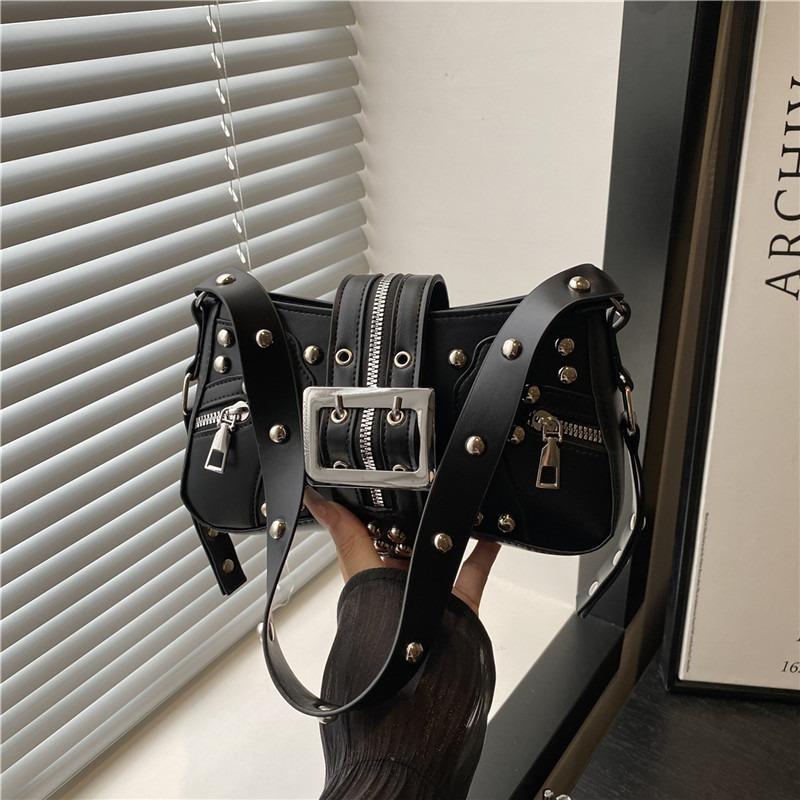 Locomotive punk rivet belt bag locomotive style shoulder armpit bag retro bag female messenger bag tide