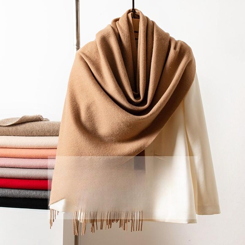New Solid Color Widened Wool Scarf Light Luxury High End Autumn and Winter Thickened Warm Wool Large Shawl