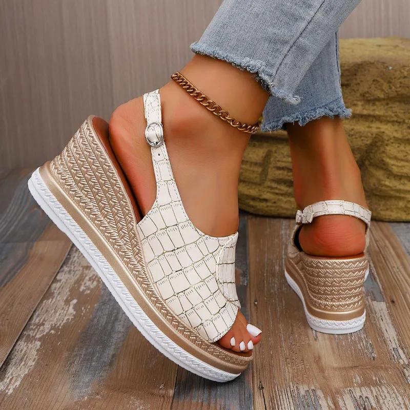 Sandały damskie na koturnie, klamra jednorzędowa, obcas 7,5 cm, wysokie buty damskie, rekreacyjne, duże rozmiary, zwięzłe, dojrzałe, 2025 Sandalias De Mujer