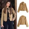 Damska kurtka z imitacji zamszu zapinana na guziki, oversize, z marszczonym dołem, krótki płaszcz, casualowa odzież wierzchnia w stylu vintage z kieszeniami