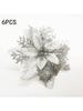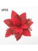 6PCS Gold Powder Christmas Flower Simulation Flower Christmas Tree Pendant Decoration Flower Wreath Accessories