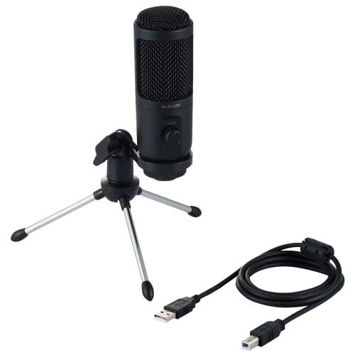 ELECOM HS-MC12UBK Condenser Microphone with USB Connection, Gain Control, Windscreen, and Mini Tripod, Black