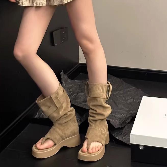 Boots women's summer 2025 high-end toe cool boots women's open-toe stacking boots thick-soled heightening western cowboy short boots