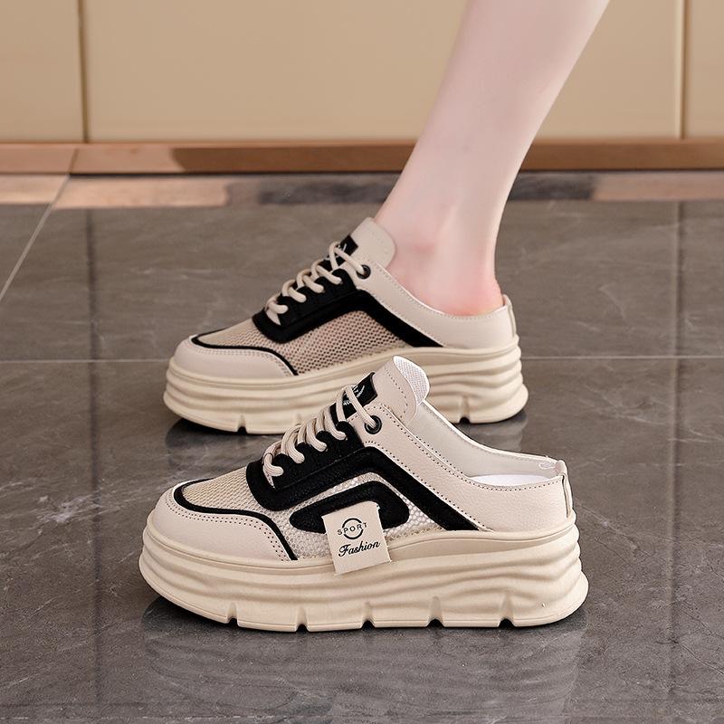 New half-drag mesh women's shoes 2025 spring and summer breathable inner height increase platform casual shoes fashion slippers CY-711