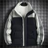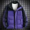 Three bars contrasting color cotton-padded clothes for men and women, winter new thickened warm stand-up collar windproof down cotton jacket