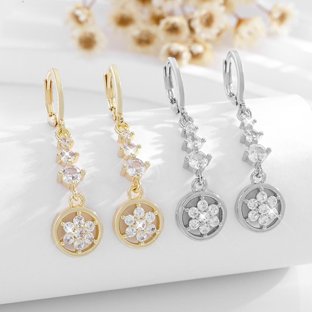 Długie kolczyki w kształcie kwiatów z cyrkoniami pozłacane 14-karatowym złotem dla kobiet
