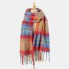 Mohair rainbow plaid fringed scarf women's thickened warm wool lengthened scarf
