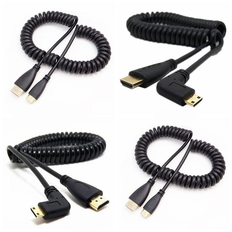 Mini 90° HDMI to HDMI HD Spring Cable for DSLR Cameras to TV