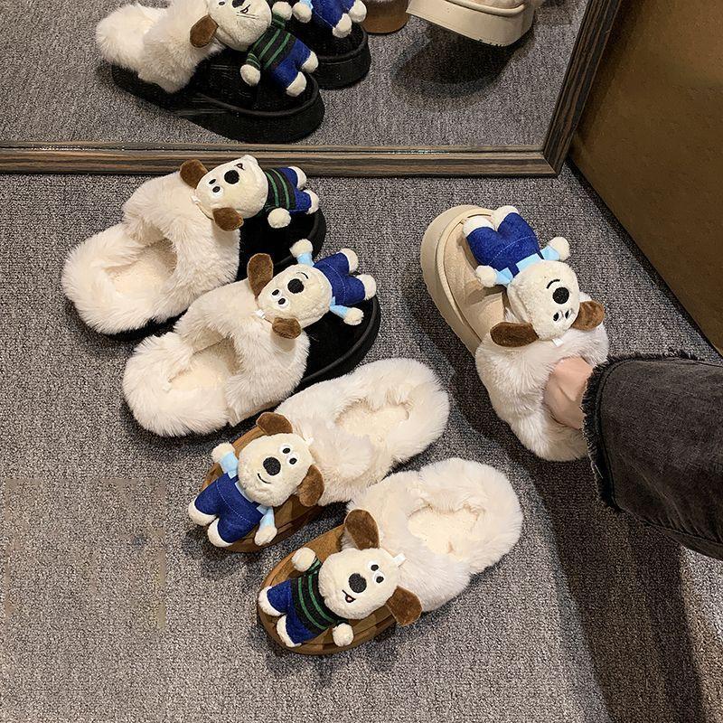 Noś pluszowe kapcie z miękką podeszwą antypoślizgową dla kobiet 2025 jesień i zima nowe kreskówkowe słodkie szczeniaczki aksamitne bawełniane kapcie dla kobiet