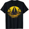 Bicie serca z żaglówką, tropikalne palmy, plaża, wyspa, koszulka