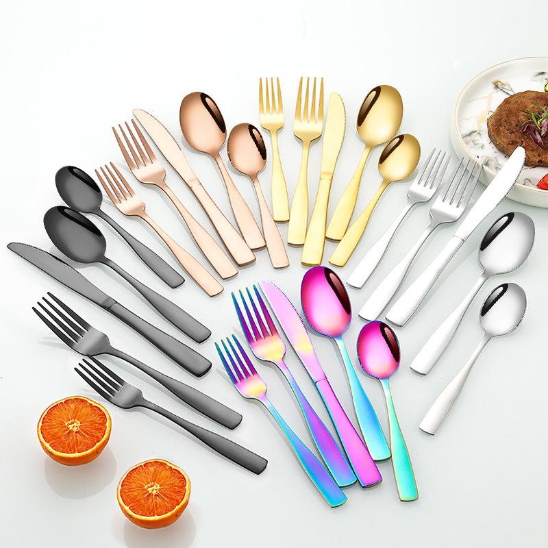 4/16/24/40pcs stainless steel cutlery set, large handle knife and fork spoon, suitable for dining room kitchen.