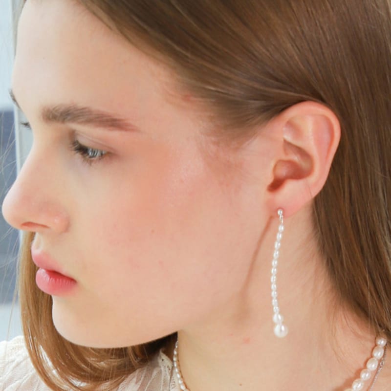 dfarbe silver natural white freshwater pearl gradient stud earrings