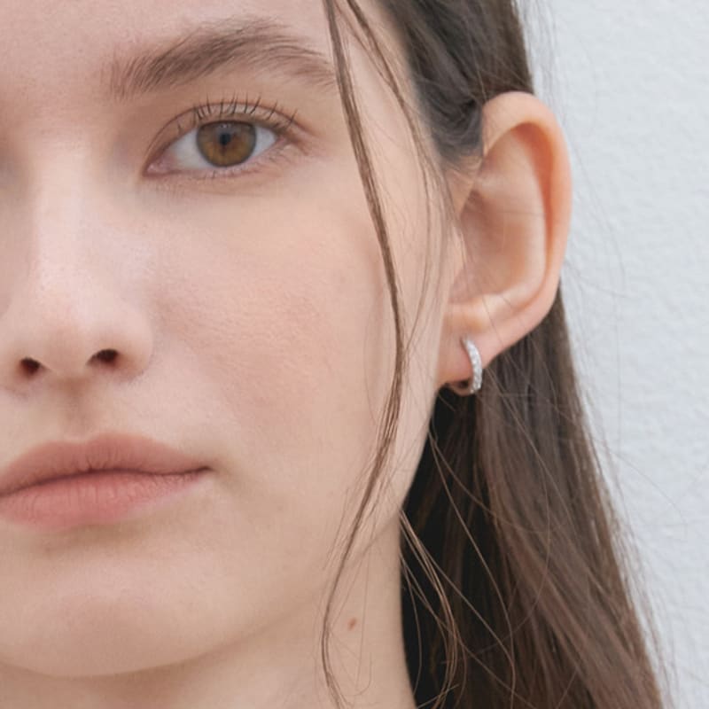 halden round cubic one touch earrings (E026_silver)