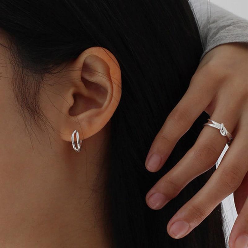 NORMALLEE [Silver 925] Double Line One-touch Earrings