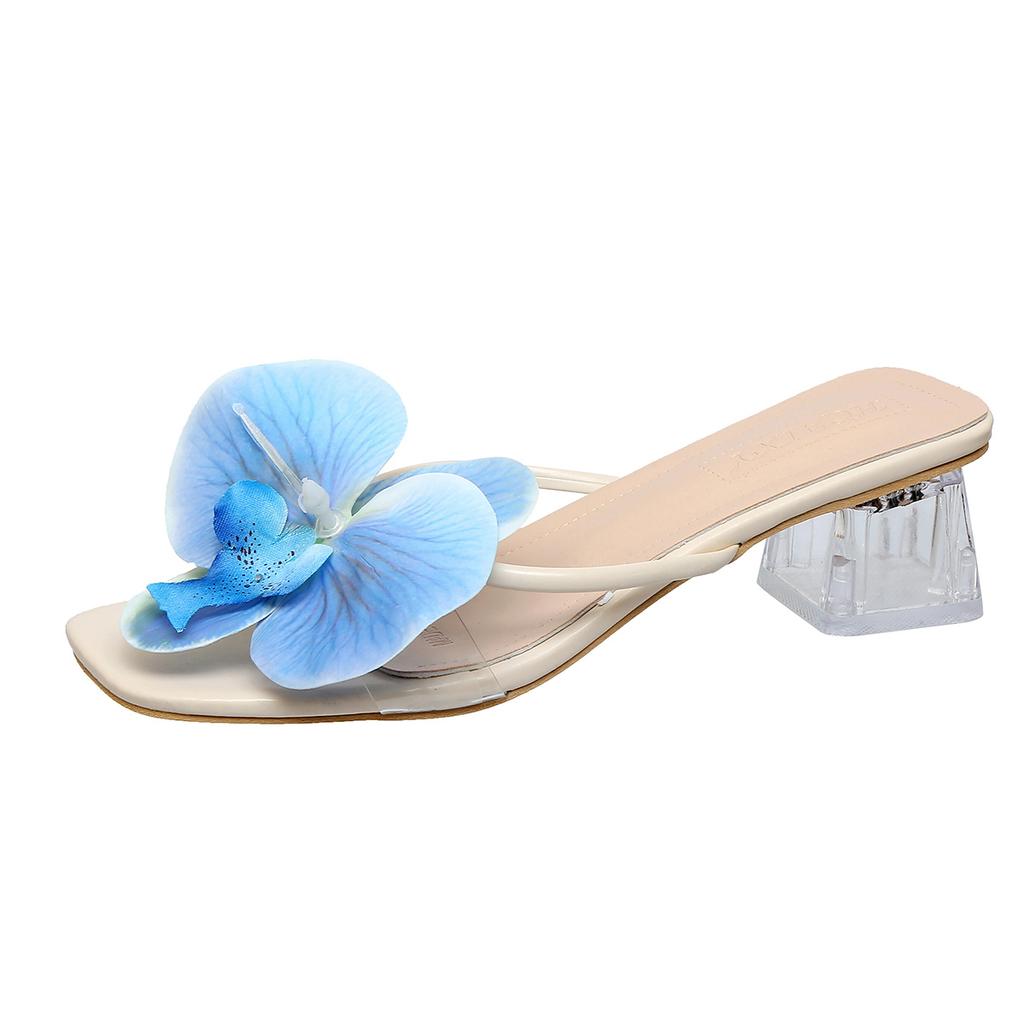 Elegant Women High Heel Slippers Brand Shoes Floral Design Mules Casual Fashion Outdoor New Summer Sandals Zapato Mujer